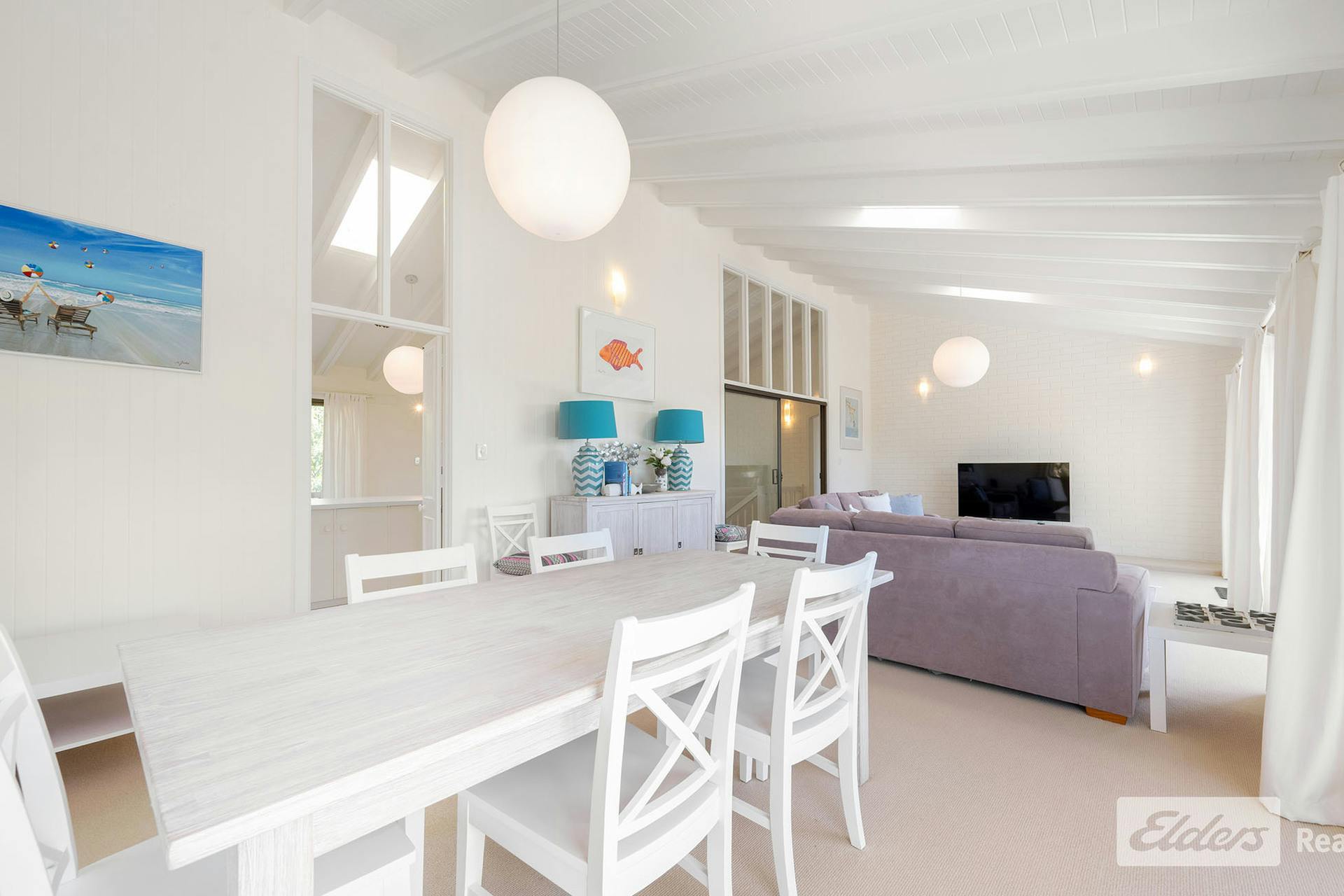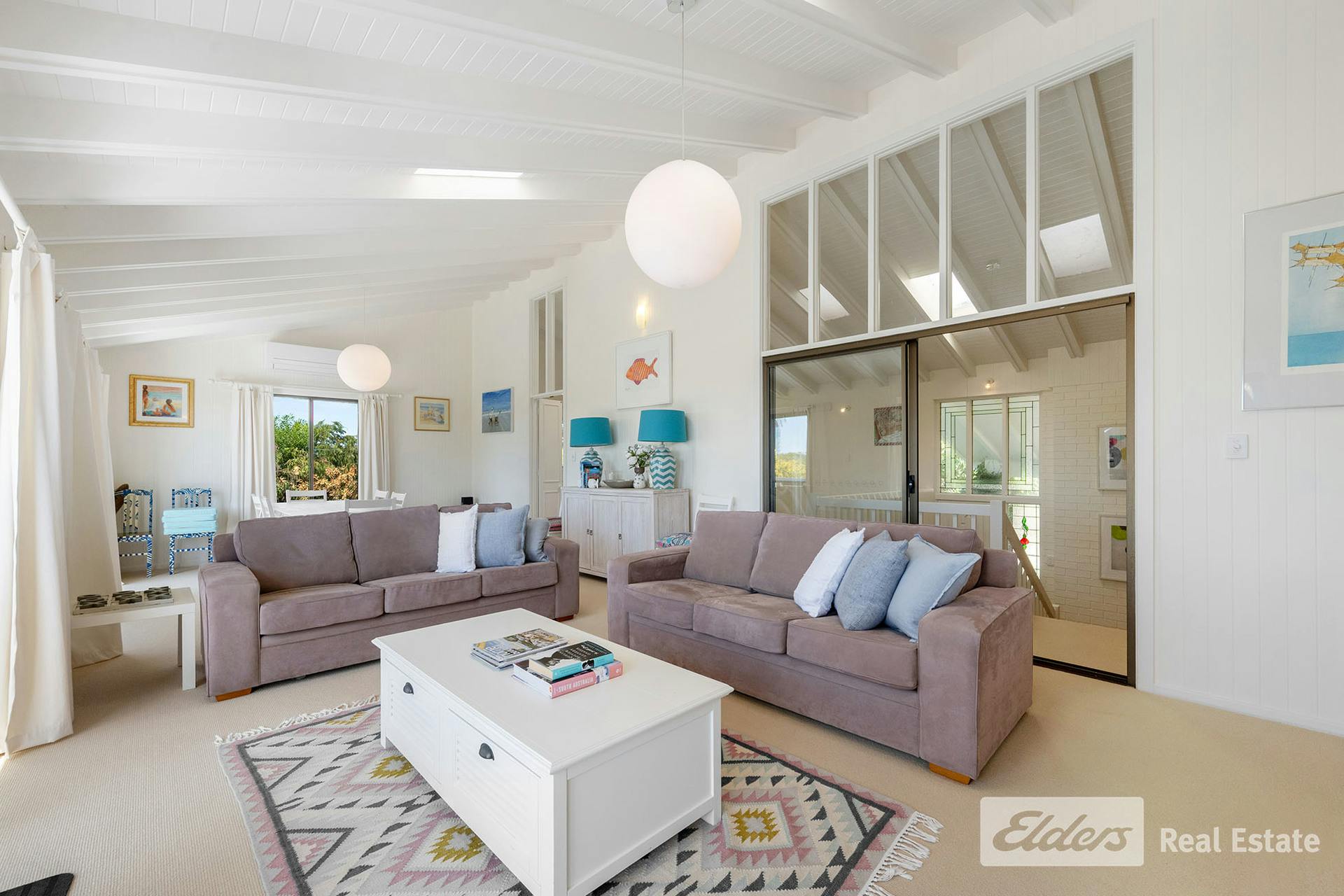 Backed by towering pines at the top of a bluff facing Guichen Bay, this stunning home is only 150m from lake outlet beach.